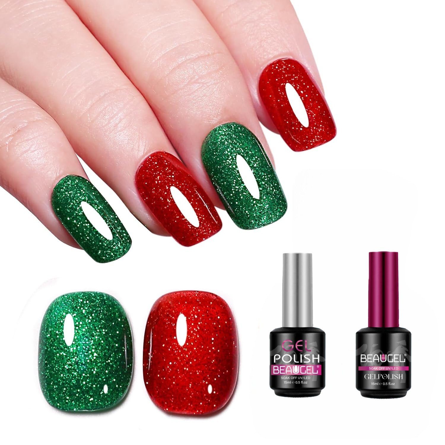 Introducing BVGEL’s 2 Colors Red Green Glitter Christmas Kit shines to your nails, or can be matched with our wide range of colorful gel nail polish or glitter powders to create the perfect look.