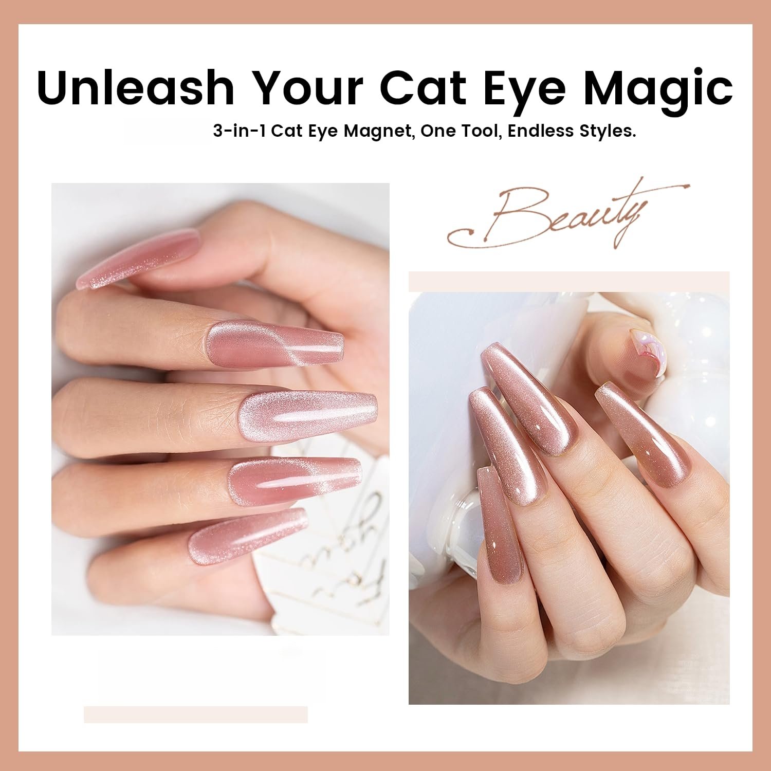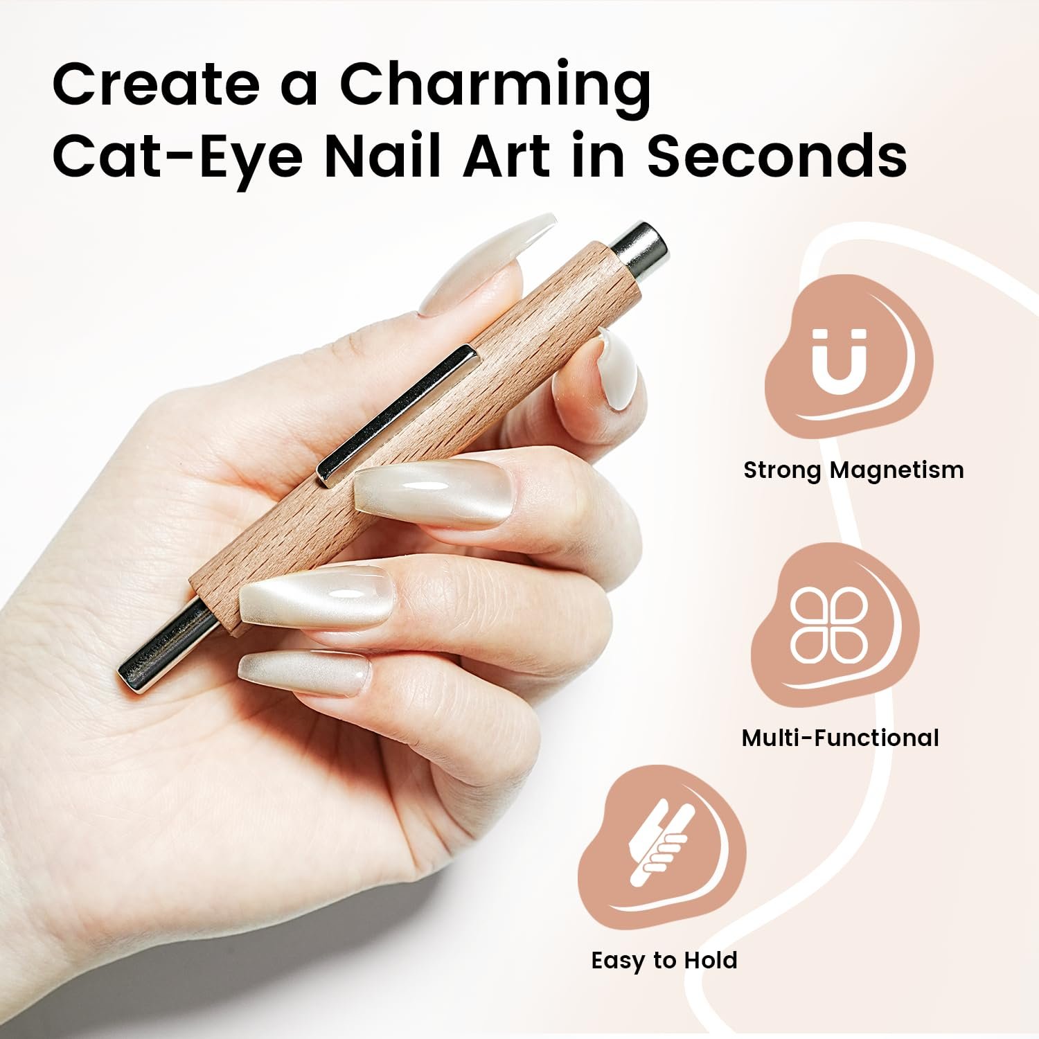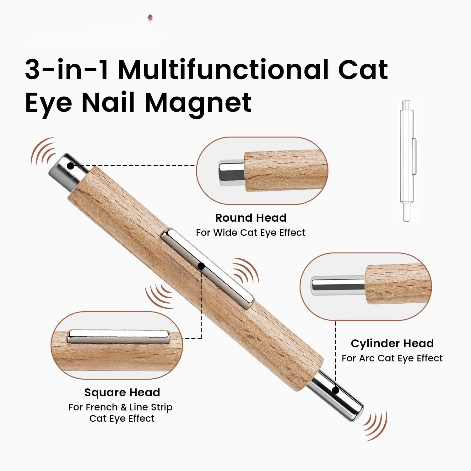 BVGEL updates the quality of 3 in 1 Cat Eye Magnet Nail Art Tool, For full-nail cat eye, move the magnet across the nail. Use the long cylindrical magnets for better precision and broader viewing angle.