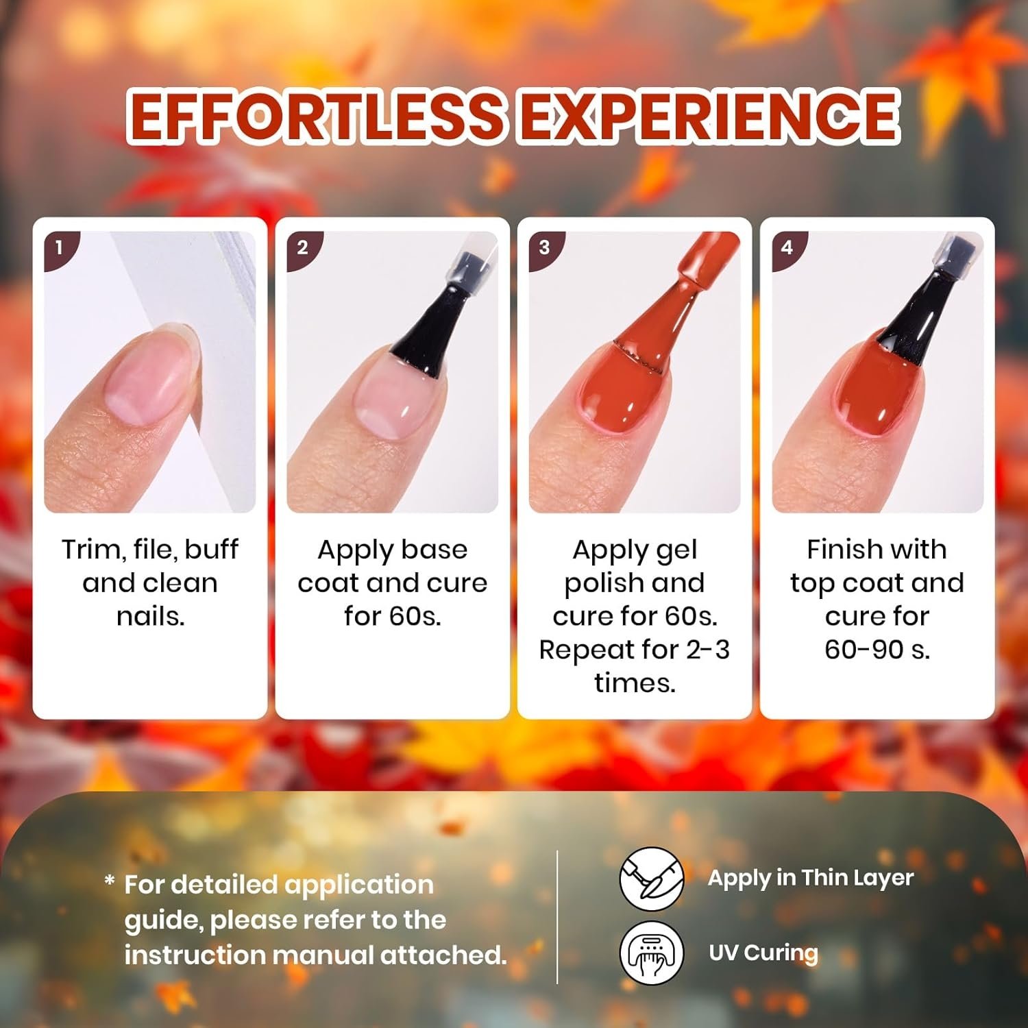 Introducing BVGEL’s 36 Trendy Winter Christmas Brown Orange Colors Gel Polish Set shines to your nails, or can be matched with our wide range of colorful gel nail polish or glitter powders to create the perfect look.