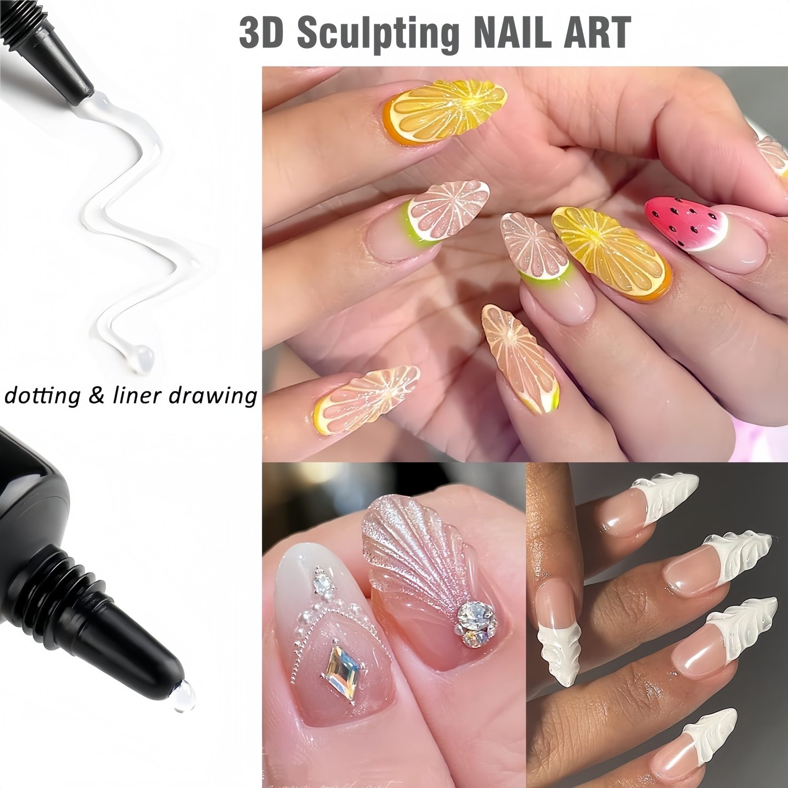 • This 3d nail art gel can be used for trendy 3d chrome nail art, 3d lines design or summer fruits nail art. You can explore and find out more interesting design with this embossing nail gel.