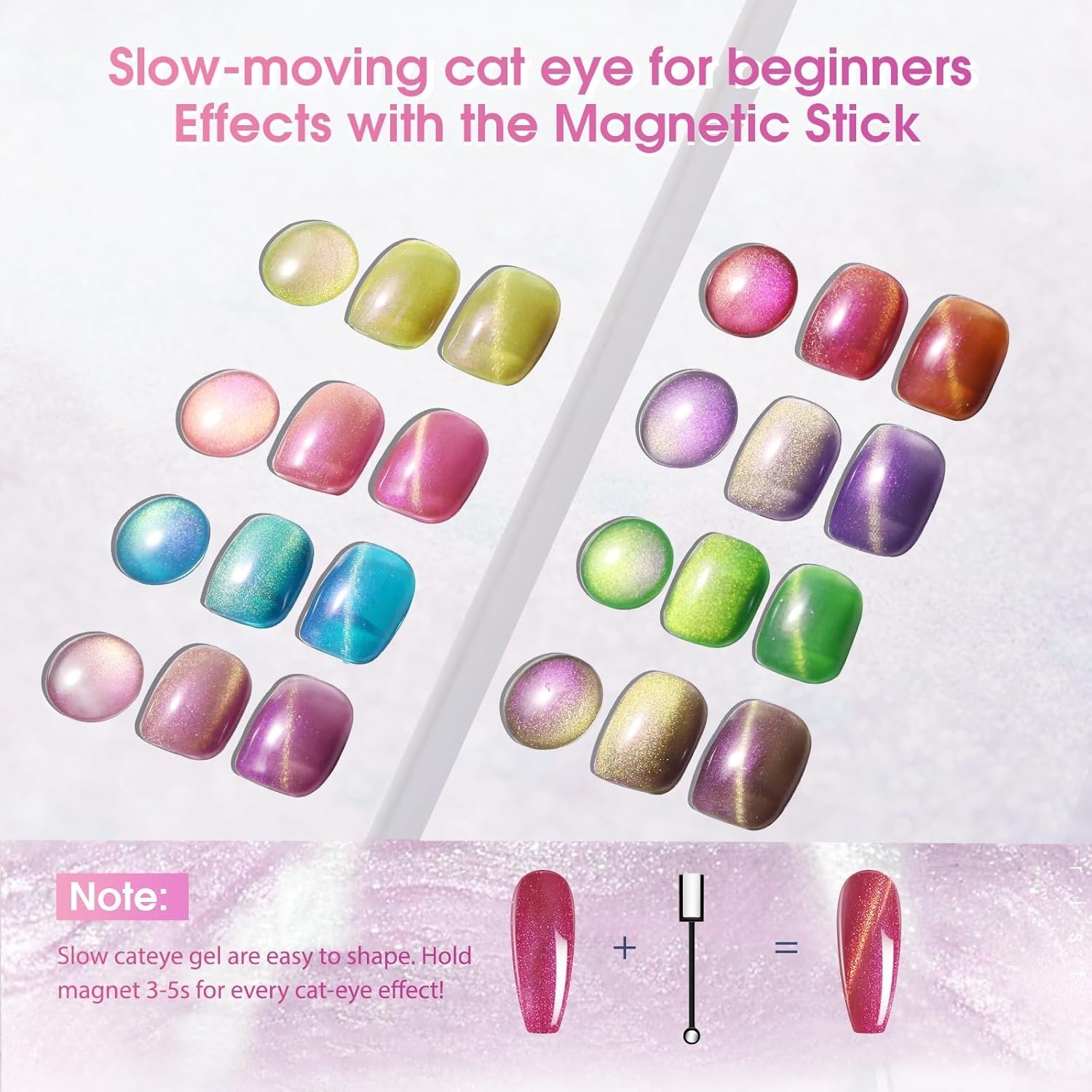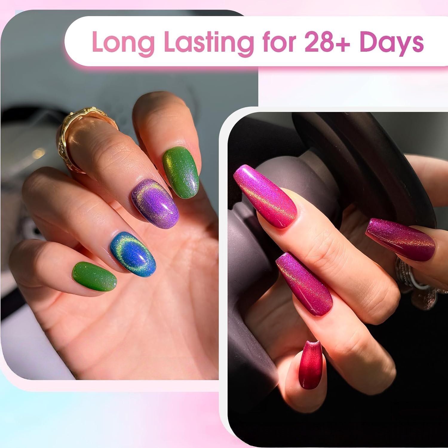 Introducing BVGEL’s 8 Colors Gold Glitter Cat Eye Gel Nail Polish Set shines to your nails, or can be matched with our wide range of colorful gel nail polish or glitter powders to create the perfect look.