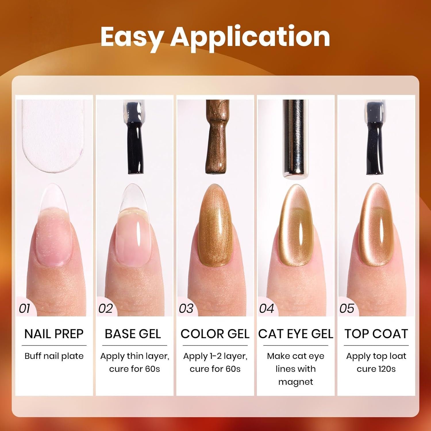 Introducing BVGEL’s Amber Glint Cat Eye Nail Gel Polish shines to your nails, or can be matched with our wide range of colorful gel nail polish or glitter powders to create the perfect look.