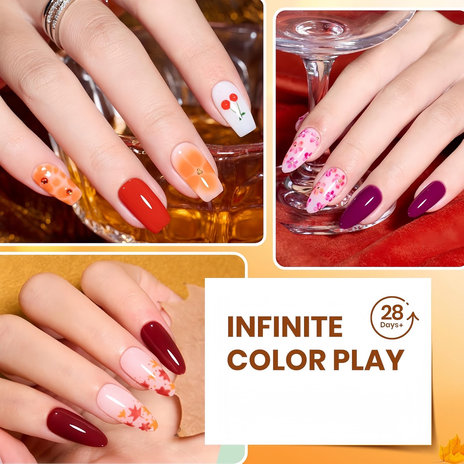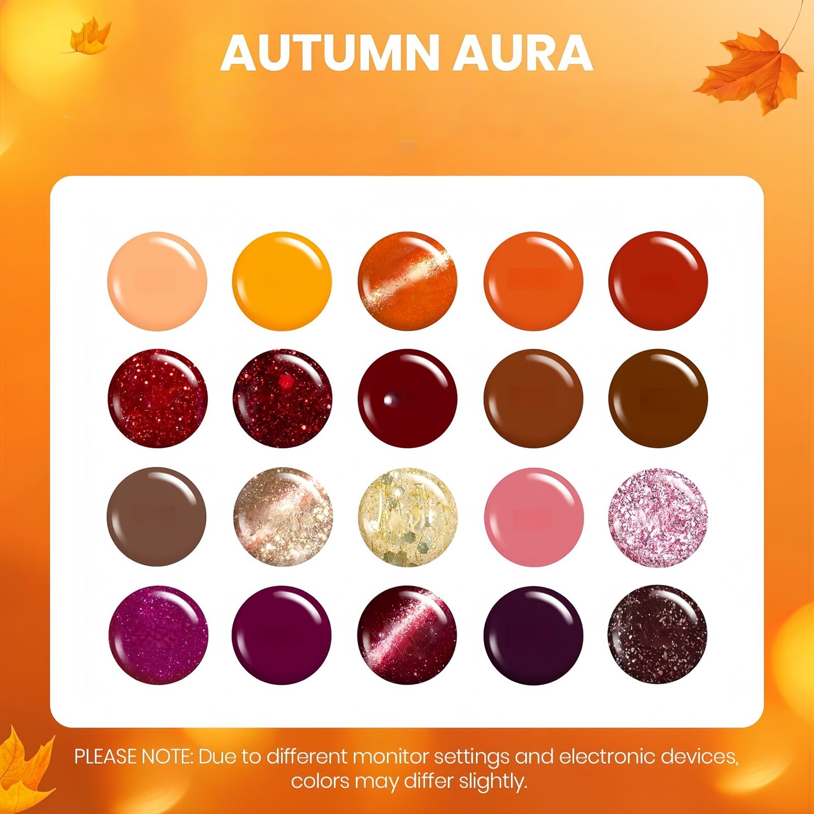 Introducing BVGEL’s Autumn Aura 20 Colors Gel Polish Kit shines to your nails, or can be matched with our wide range of colorful gel nail polish or glitter powders to create the perfect look.