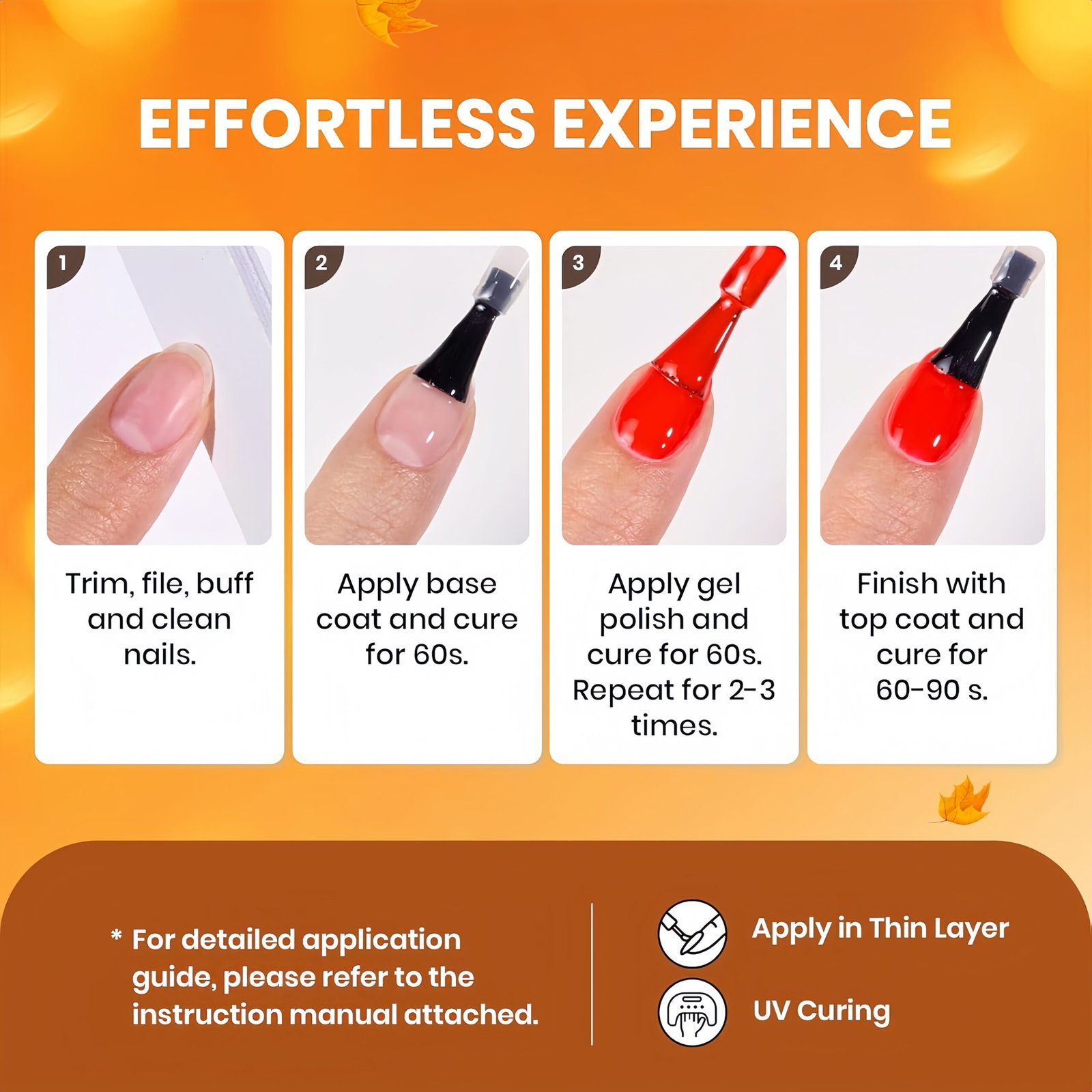 As a leading gel polish manufacturer, BVGEL understands the challenge of maintaining the pristine appearance of light-colored nail designs. Introducing our revolutionary Autumn Aura 20 Colors Gel Polish Kit, Our Gel Polish is highly pigmented, delivering a super shiny effect in just two coats. For a gorgeous, shimmery, and sparkly finish, simply apply a gel top coat.