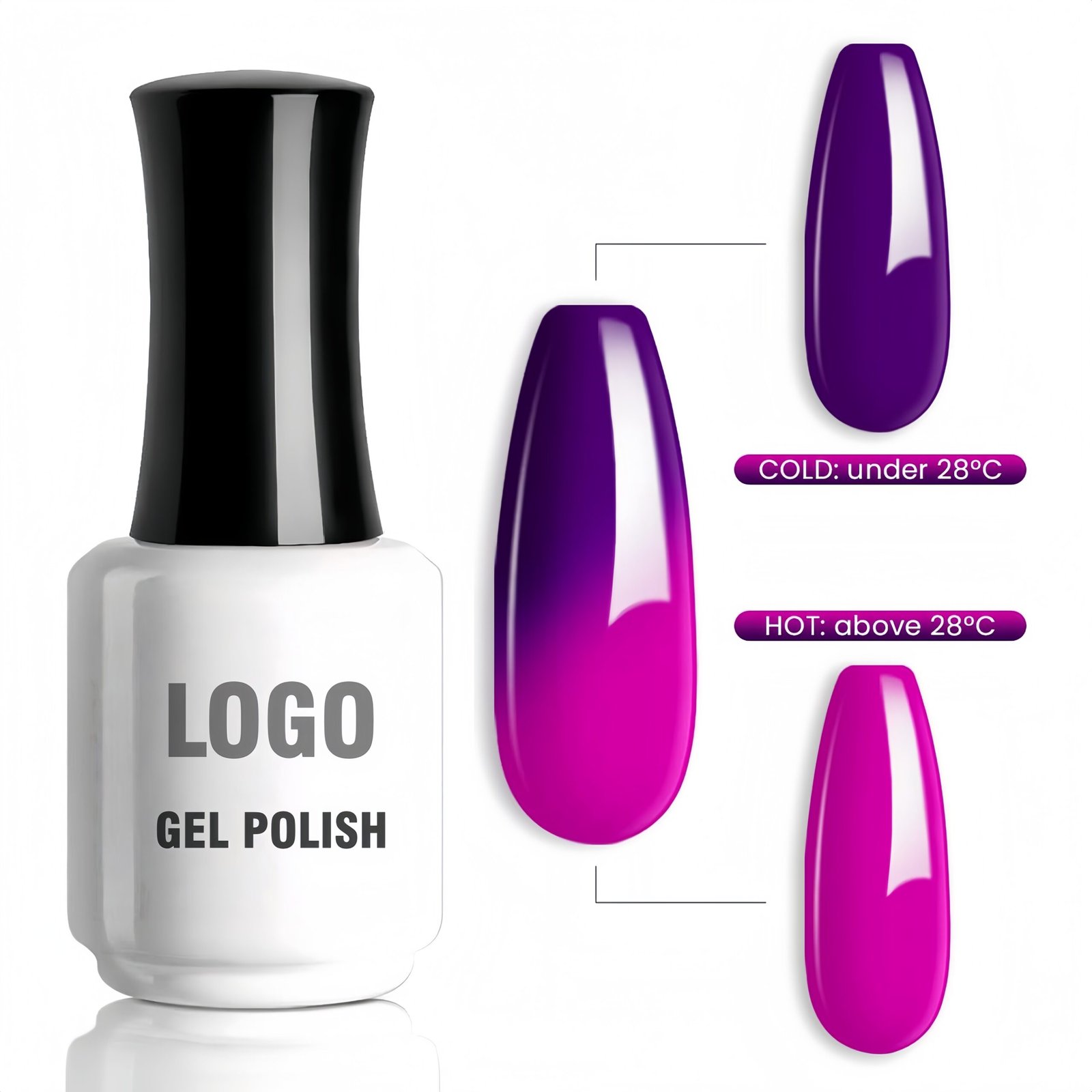 • Bright Purple Mood Temperature Change Gel is both interesting and magical,it not only influenced by body temperature,but also by environmental temperature. When the temperature is above 28℃,the color becomes brighter purple,and when the temperature is below 28℃,the color becomes darker purple. So you can feel the interesting magic of temperature change on your nails.