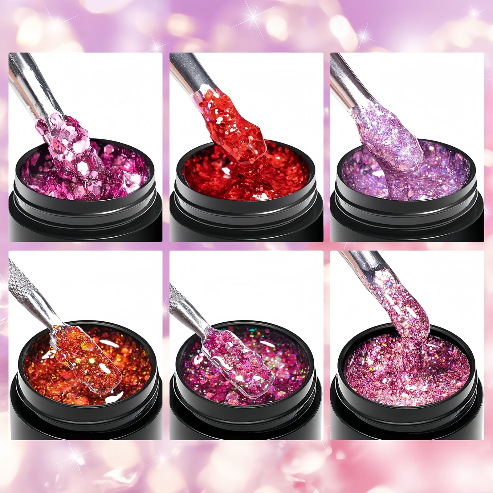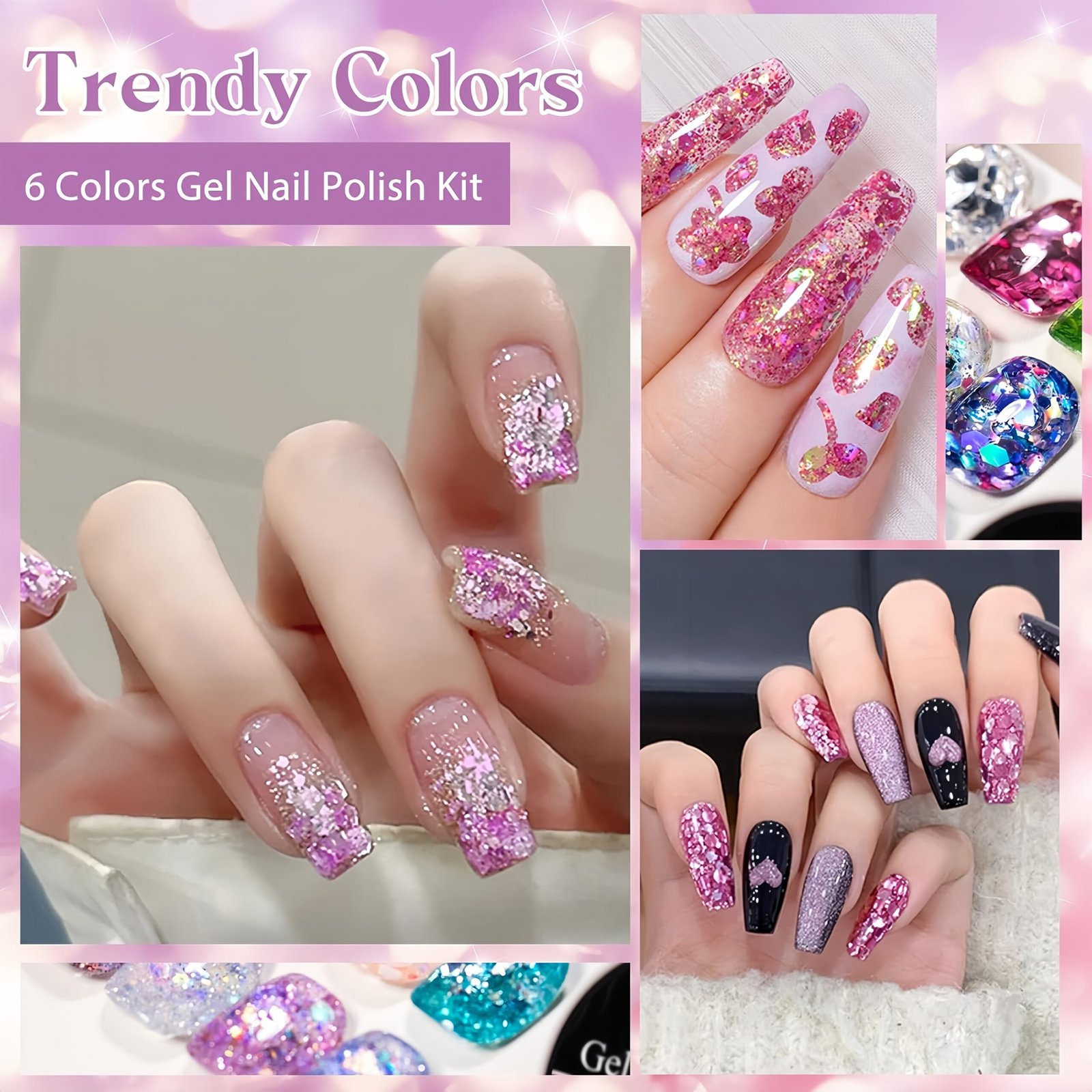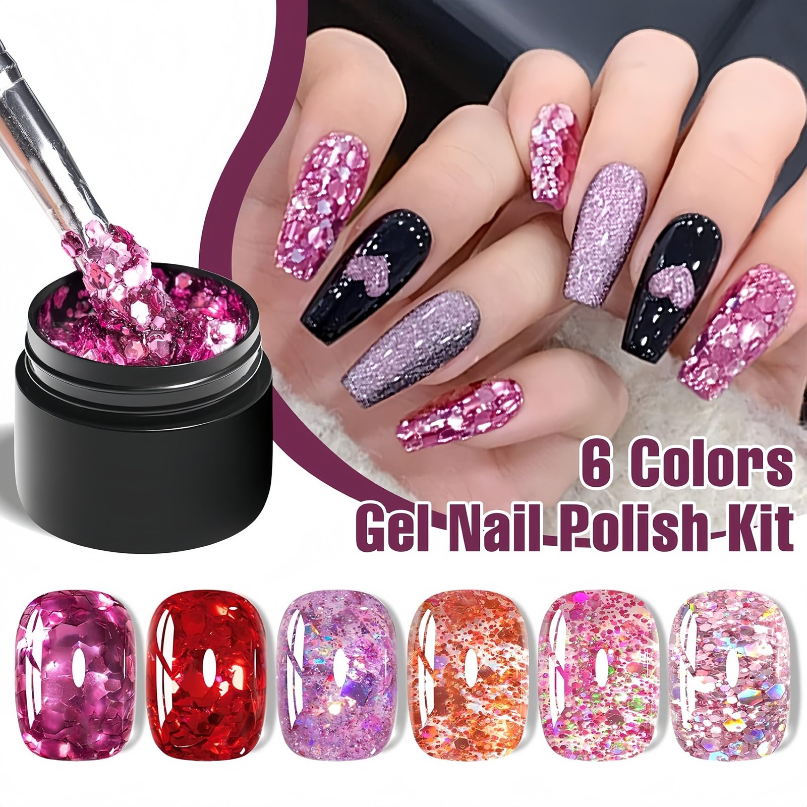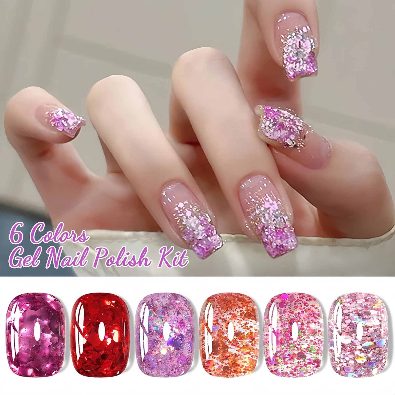 • 6 Unique Colors: Various 6 colors glitter sequins gel nail polish will outfit your any style and suitable for all season. You don’t need to be tangle in choosing colors to match your dress, and you will be more elegant in daily life, various dating and activities.