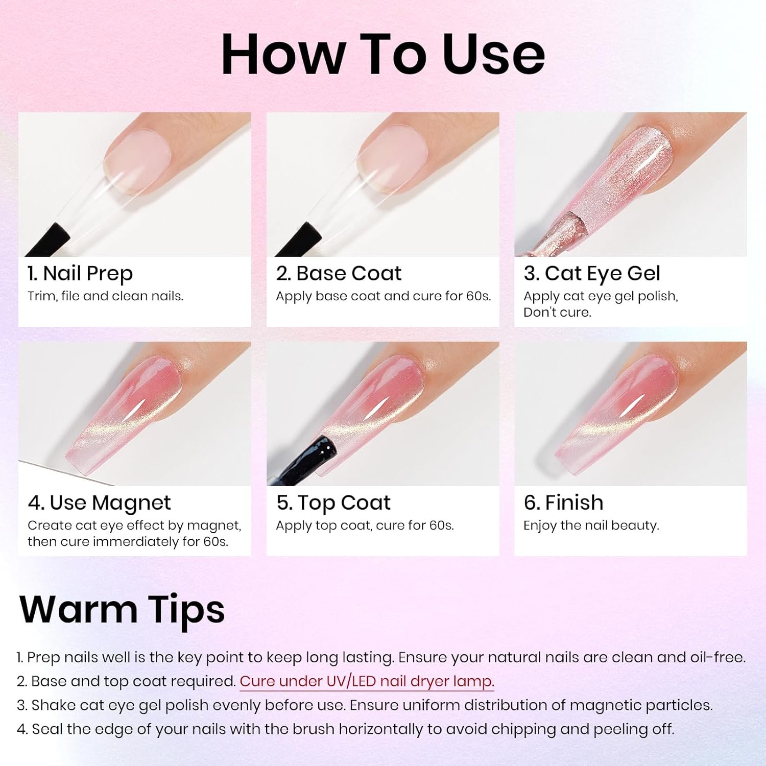 Diamond Cat Eye Gel Polish is a cool and fun new way to change your nail color. Whether you’re in a hurry, at school, or at work – with these gel polishes, two coats will give your nails glossy, vibrant, long-lasting polish that’s easy when it’s time to switch colors removed.