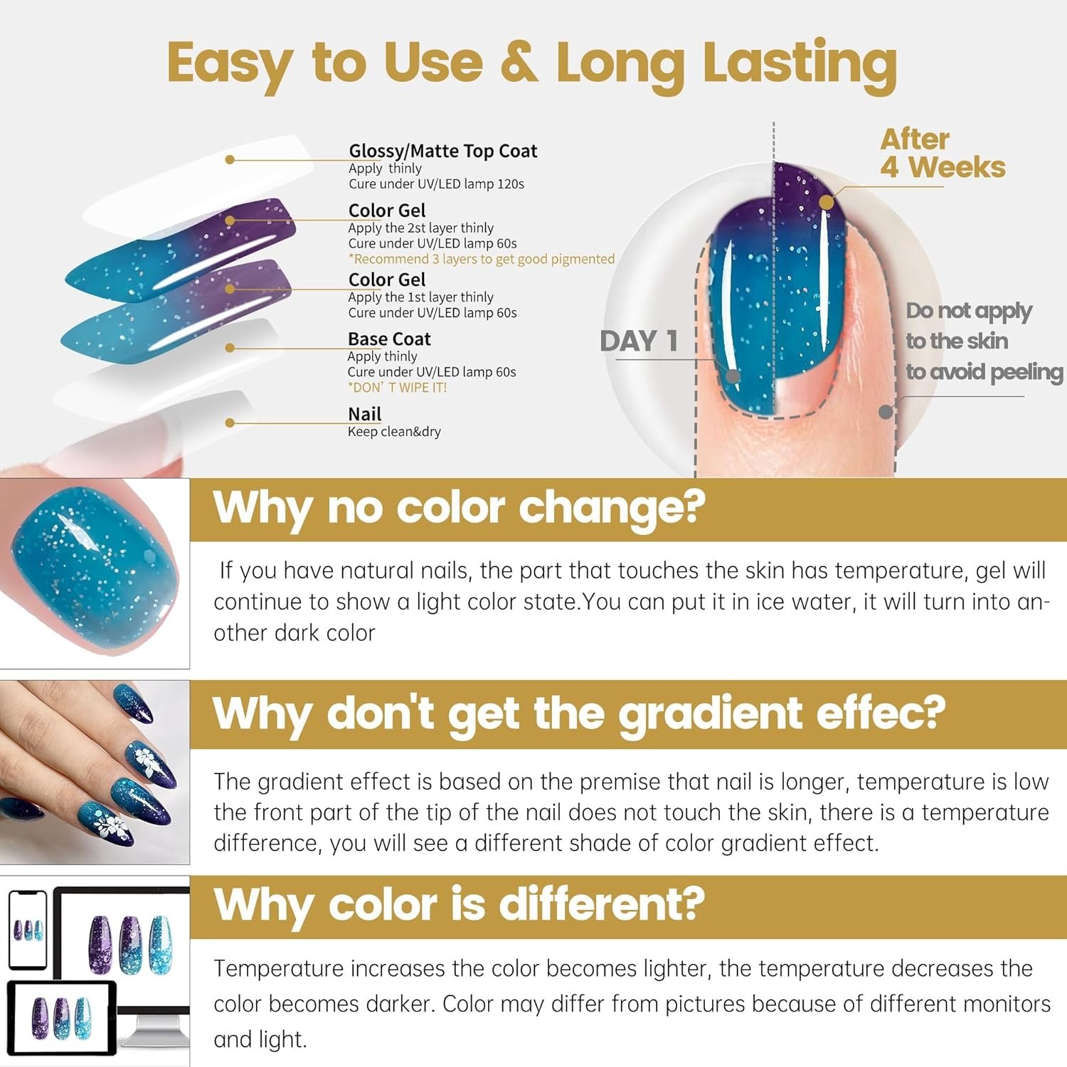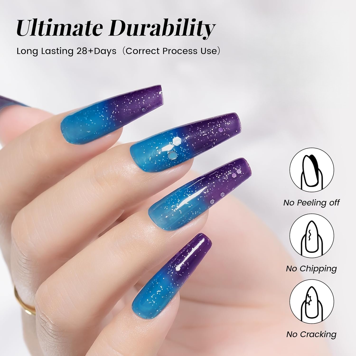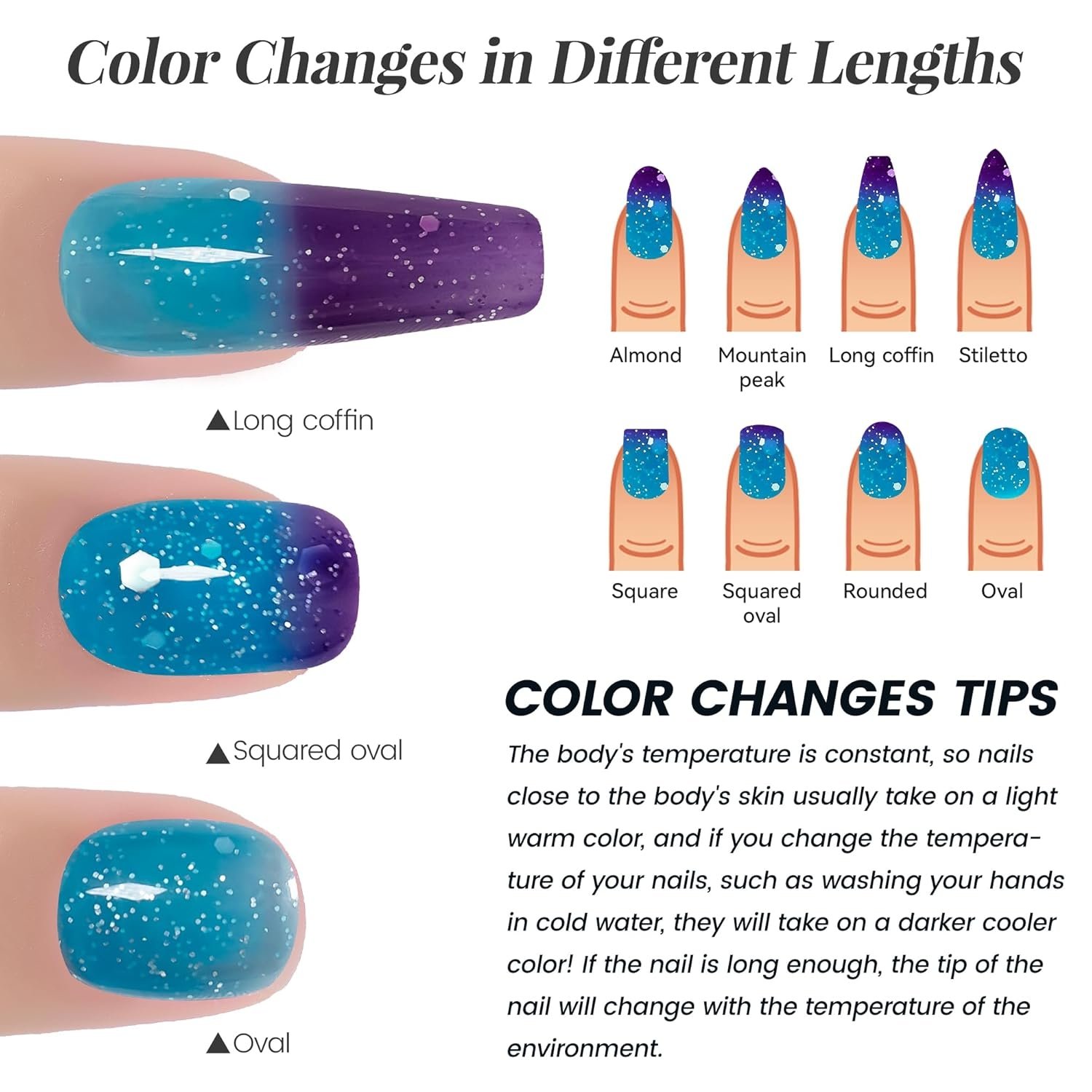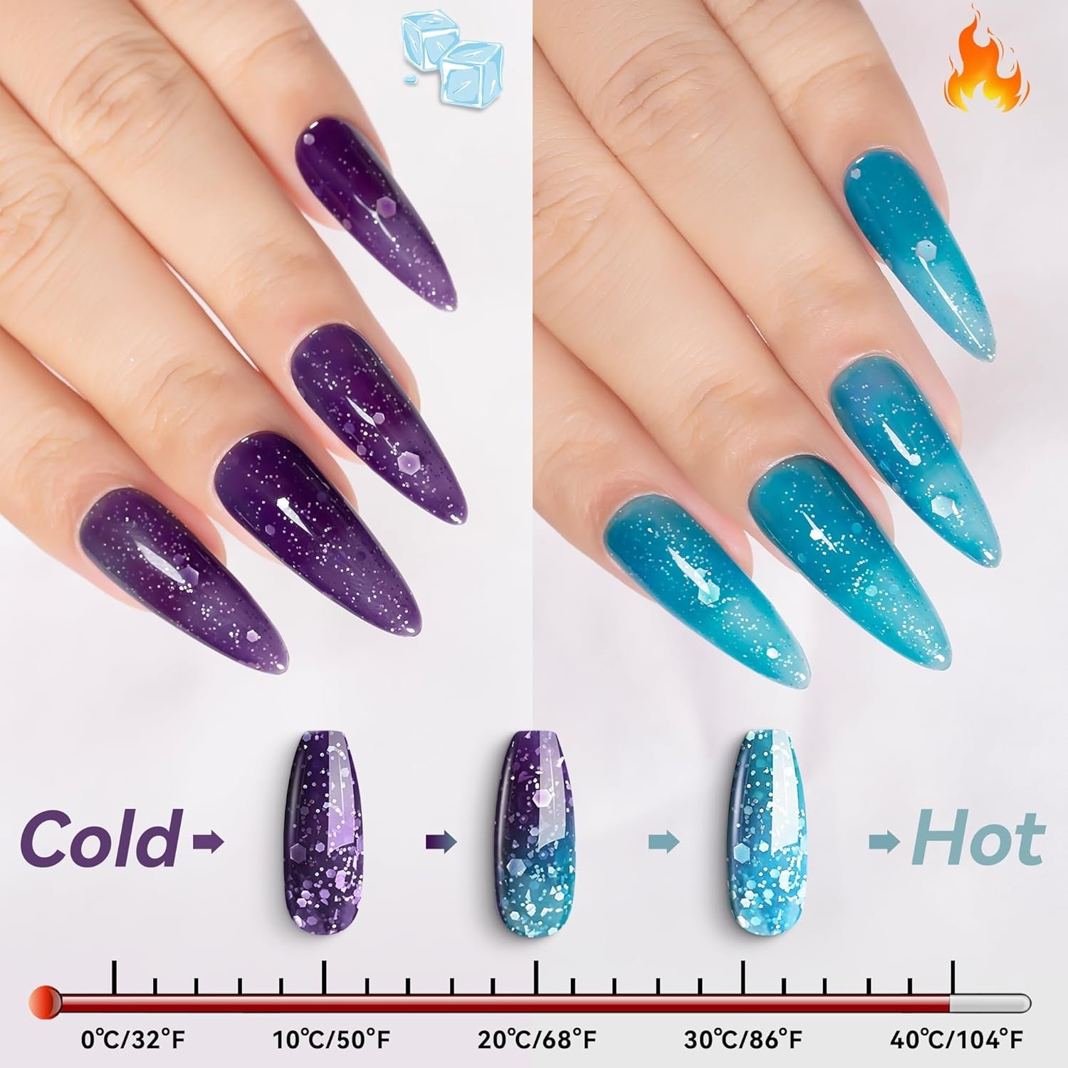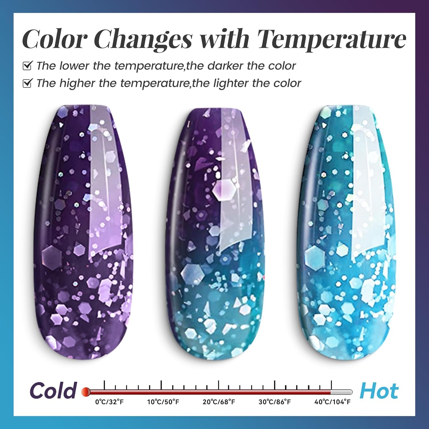Introducing BVGEL’s Glitter Mood Temperature Change Gel Nail Polish shines to your nails, or can be matched with our wide range of colorful gel nail polish or glitter powders to create the perfect look.