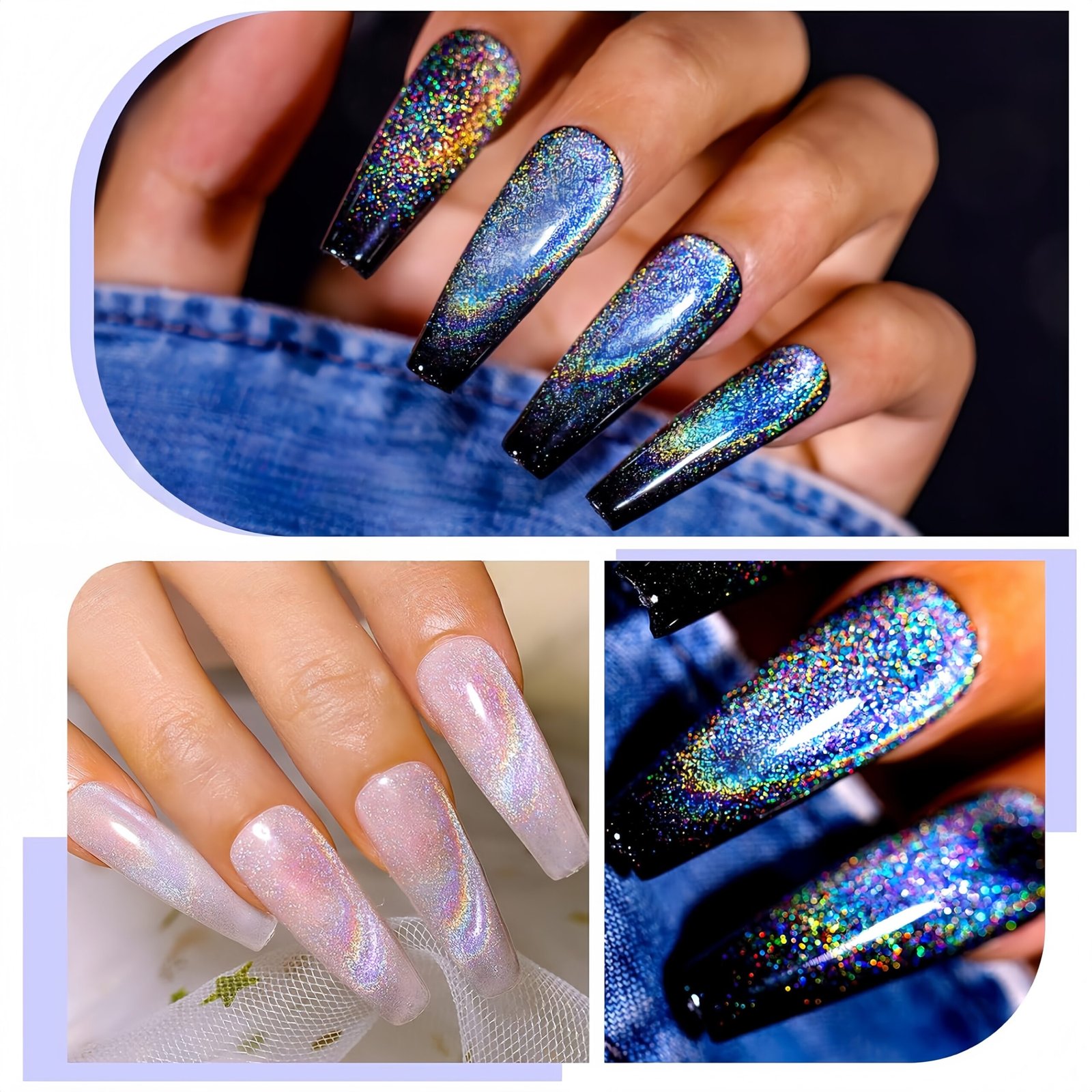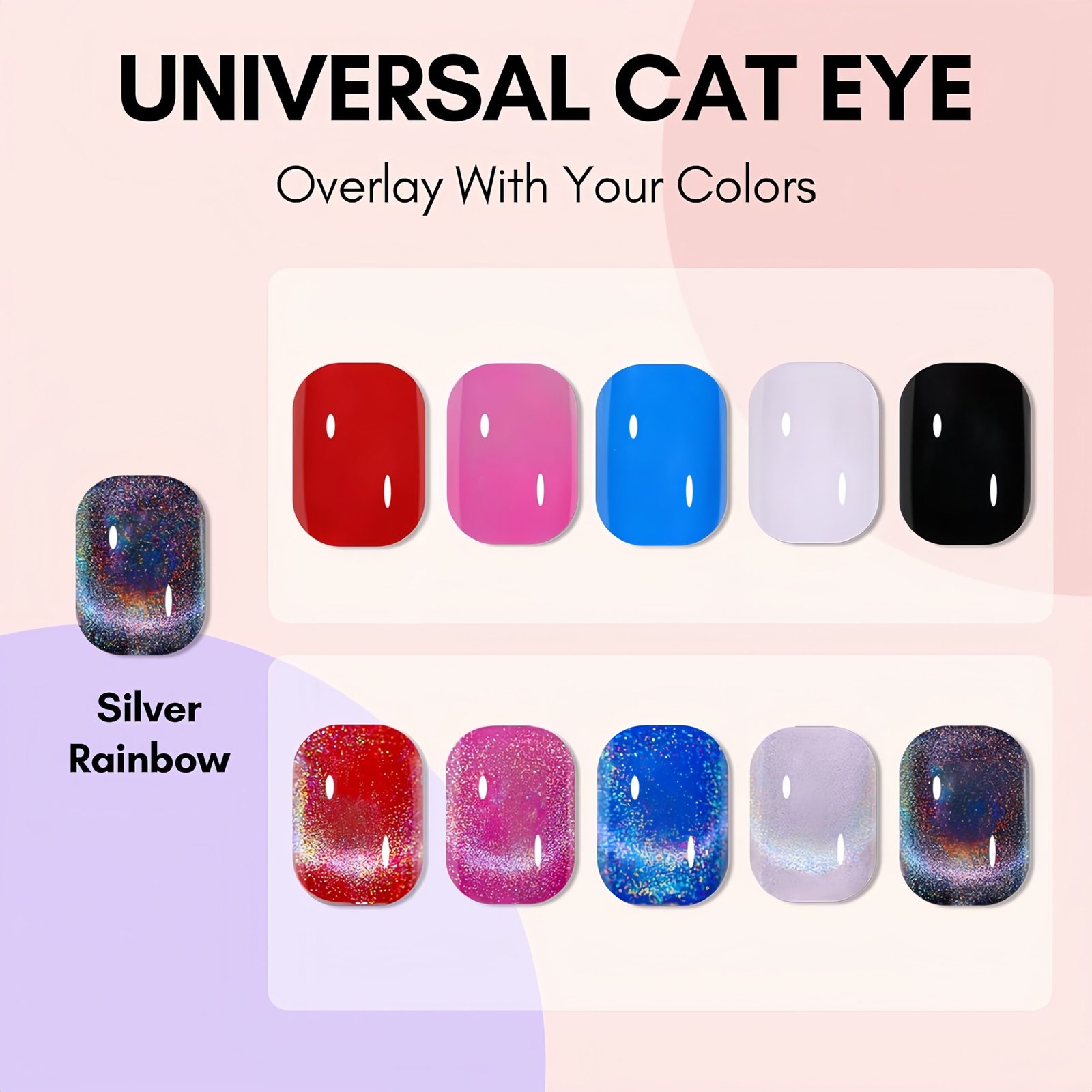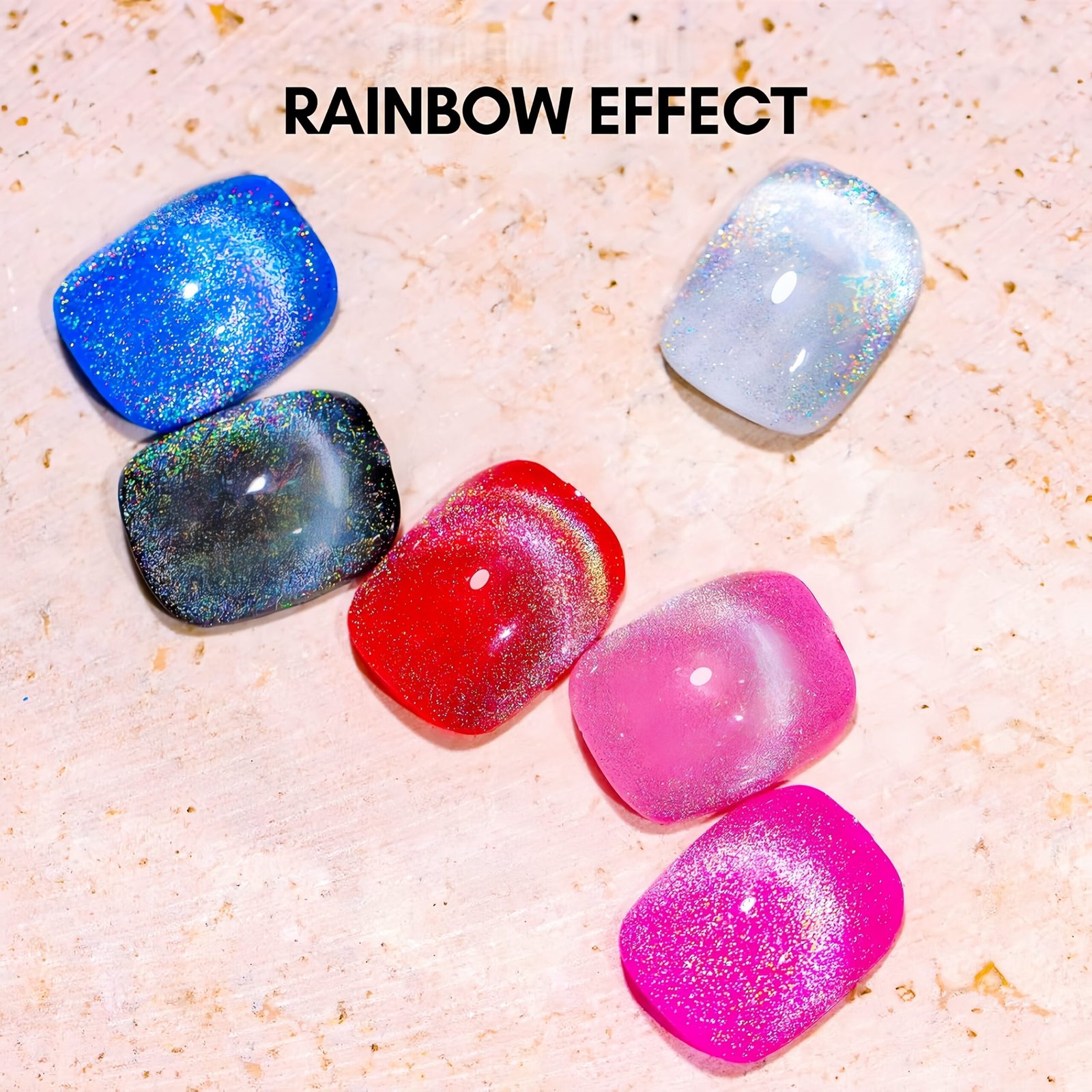 Introducing BVGEL’s Rainbow Holographic 9D Cat Eye Gel shines to your nails, or can be matched with our wide range of colorful gel nail polish or glitter powders to create the perfect look.
