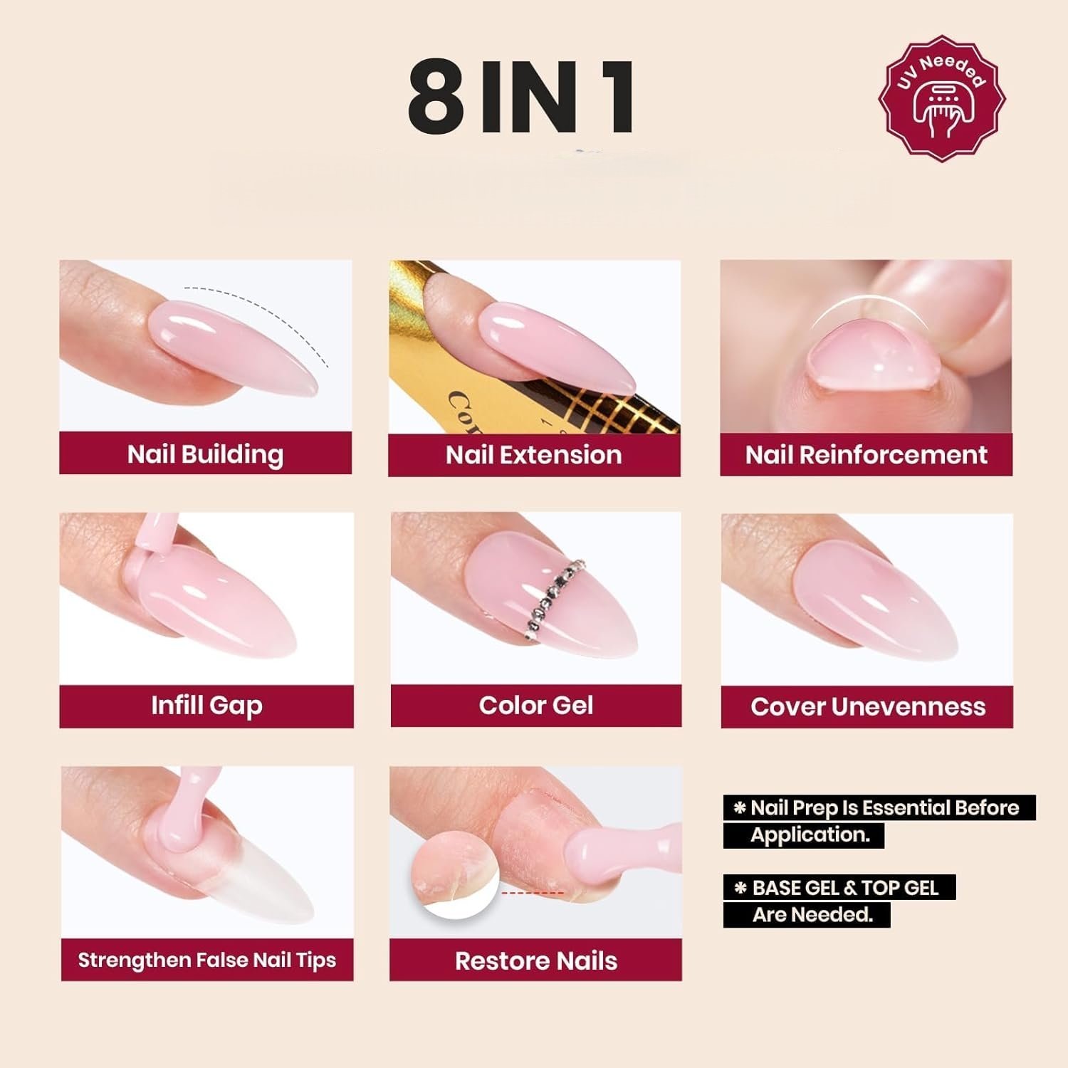 Our Red Builder Nails Gel for Nail Extension has everything you need for a Salon-quality manicure at home. The nail brush ensures easy application for beginners. Achieve beautiful, long-lasting nails in just minutes!