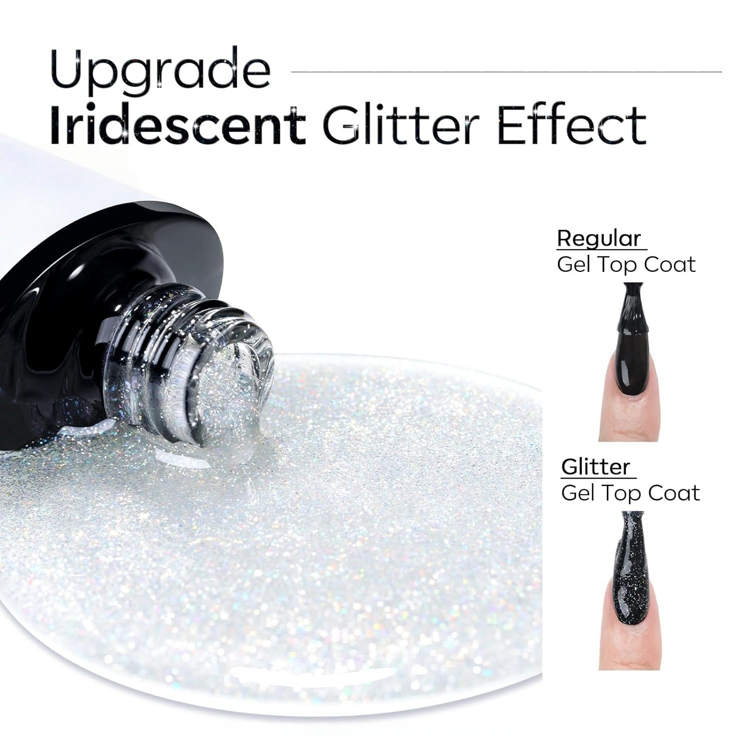 • Compatible with All Base Colors :1 bottle get all shades of glitter gel nail polish, it can be worn with a variety of colours and add a touch of pizazz. The glitter gel nail top coat can be layered over bare nails or any colored gel polish making them a bit more versatile. Different base color get different effects, Try it!