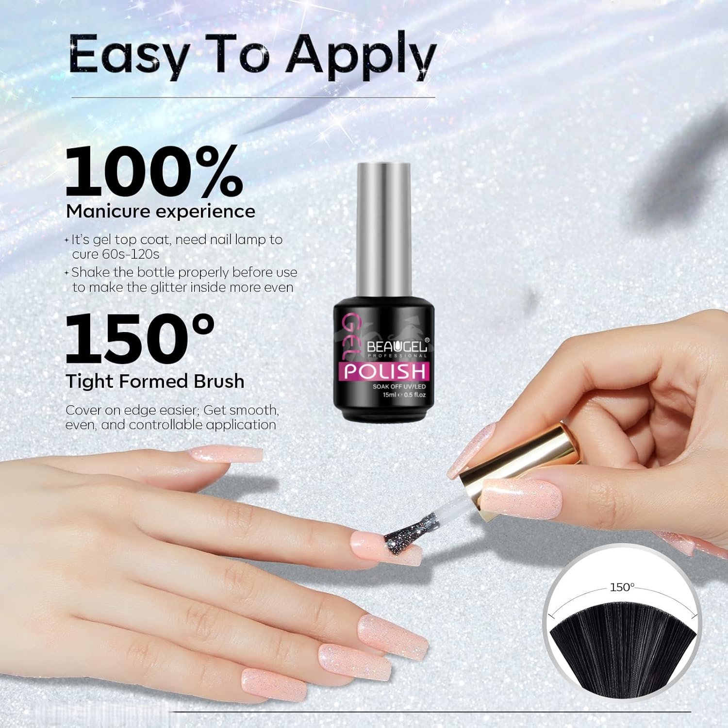 • Safe for mani-pedi: All about BVGEL’s glitter nail top coats are from harmless natural resins, 11 toxin free and low odor; The top coat ingredients without any harmful chemicals, safe for nails and skin, the trusted choice for every mani-lovers