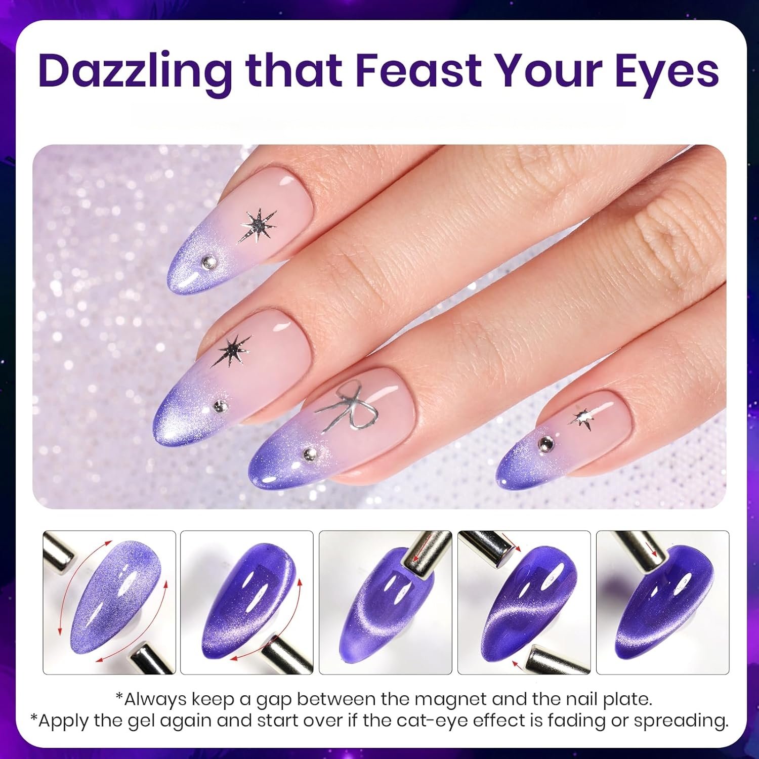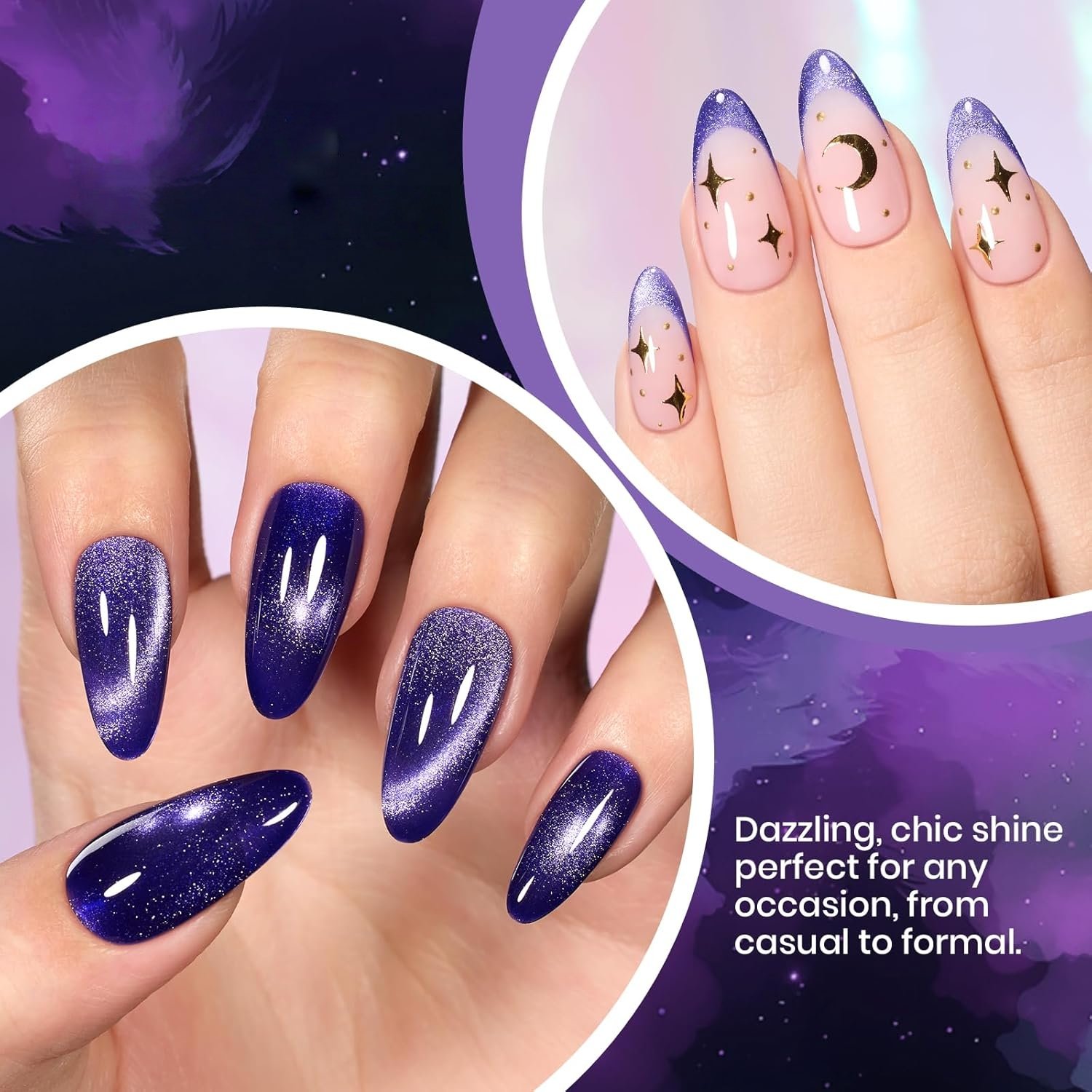 Introducing BVGEL’s Shimmer Velvet Purple Cat Eye Gel Polish shines to your nails, or can be matched with our wide range of colorful gel nail polish or glitter powders to create the perfect look.