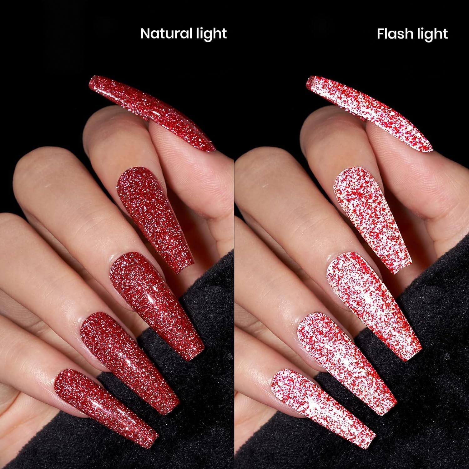 Introducing BVGEL’s Sparkly Glitter Diamond Red Nail Gel Polish shines to your nails, or can be matched with our wide range of colorful gel nail polish or glitter powders to create the perfect look.