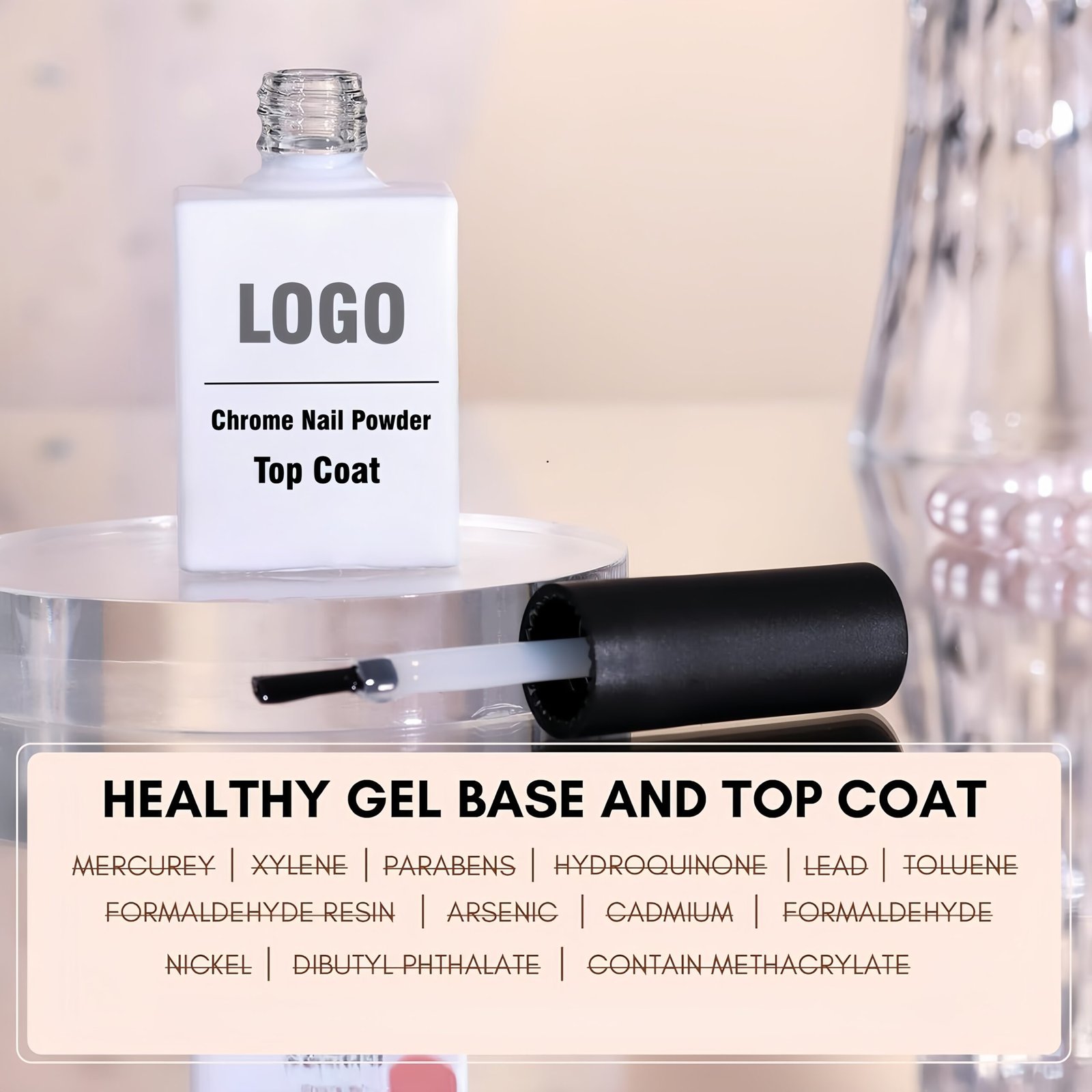 Healthy Ingredients: Top Coat for Chrome Nail Powder is crafted with user-friendly, healthy ingredients, offering a low-odor formula that is gentle on your nails, ensuring you with a pleasant and comfortable manicure experience It is designed to synergize effortlessly with chrome nail powder, guaranteeing impeccable results regardless of curing duration. In contrast, it becomes problematic when applying the chrome powder with regular topcoats if cured for over 30 seconds.