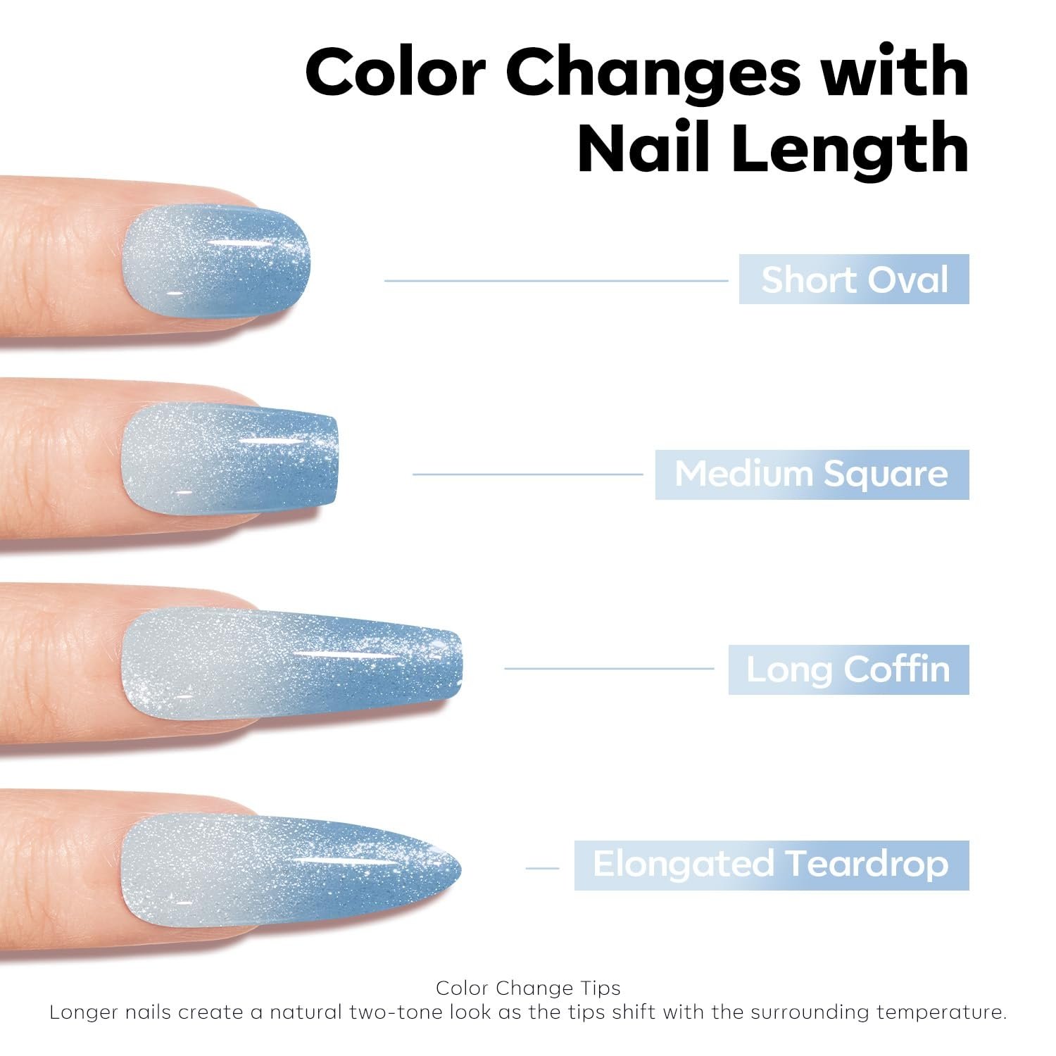 Introducing BVGEL’s White Blue Color Changing Mood Temperature Gel Nail Polish shines to your nails, or can be matched with our wide range of colorful gel nail polish or glitter powders to create the perfect look.