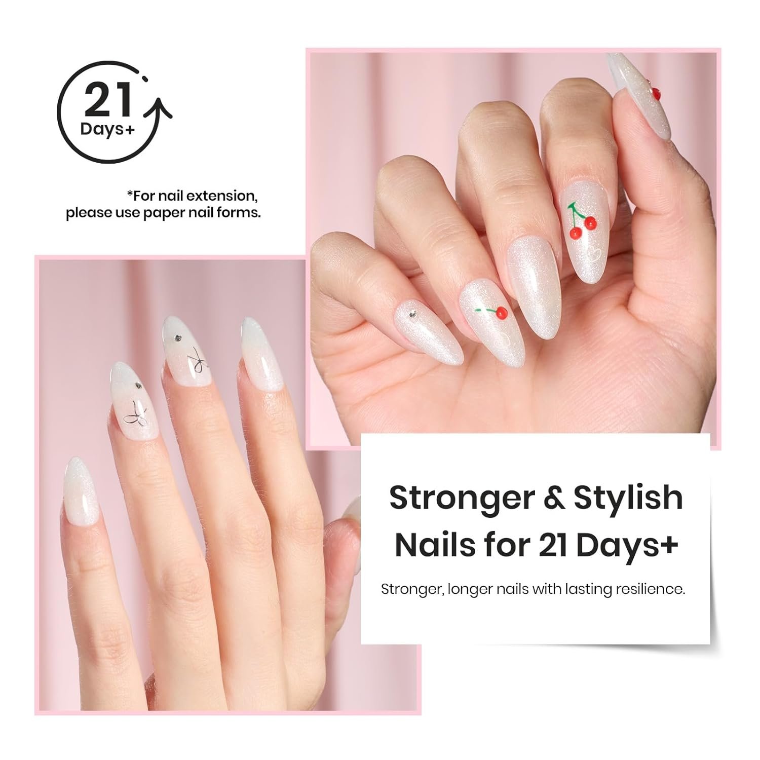 Strong Adhesion & Long-lasting: With proper application (buffering, cleaning, base & top coat and cured under nail lamp), this curing process ensures long-lasting nail art that can endure for at least 28 days.